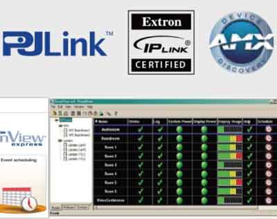 具有RJ-45接口和RS232接口,可支持多種網(wǎng)絡(luò)控制協(xié)議(Crestron/Extron/PJLink/AMX/TeInet)用戶可根據(jù)應(yīng)用環(huán)境的需求,搭配不同的控制設(shè)備進行遠程控制和集中管理。